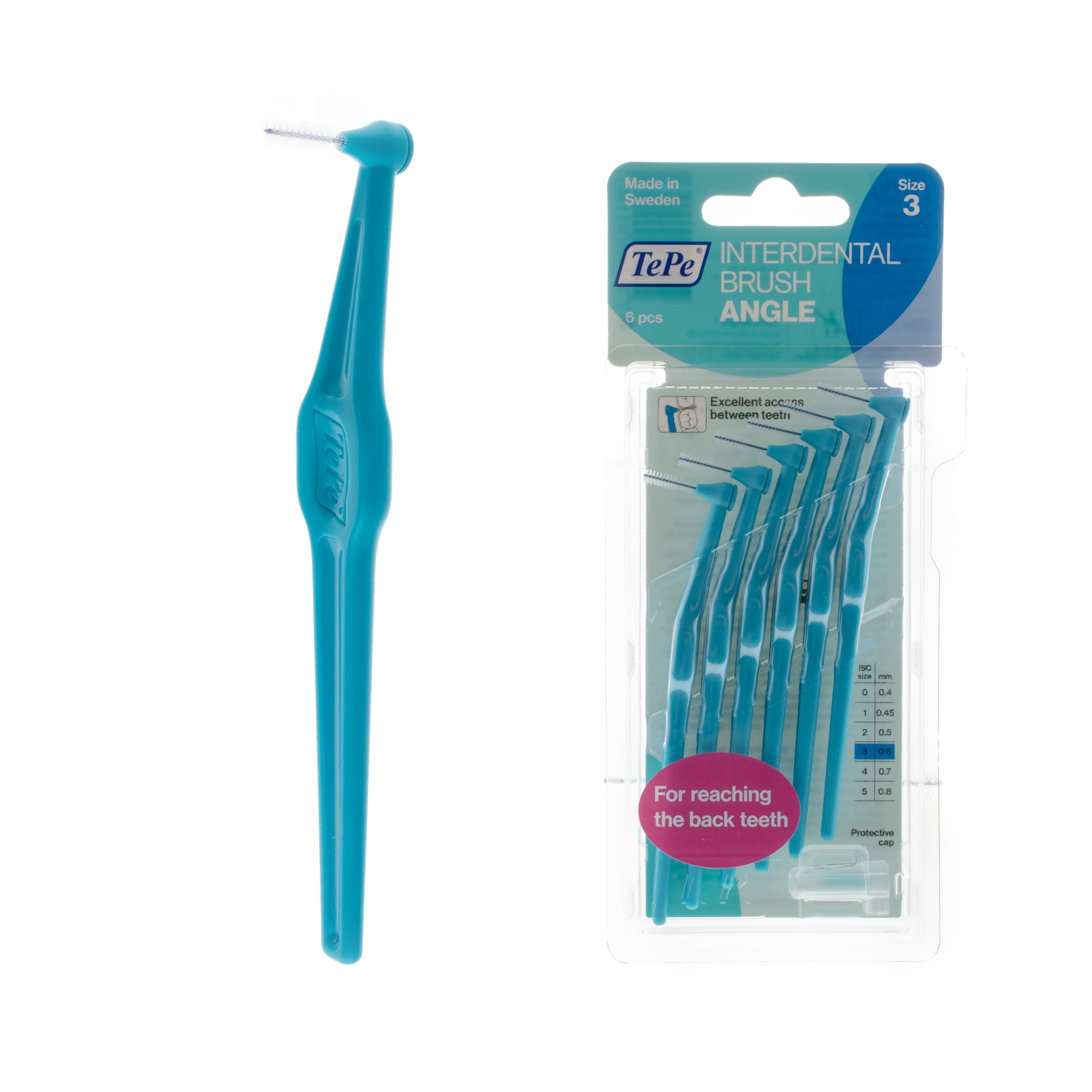 - 6× medzizubná kefka TePe Angle 0,60
