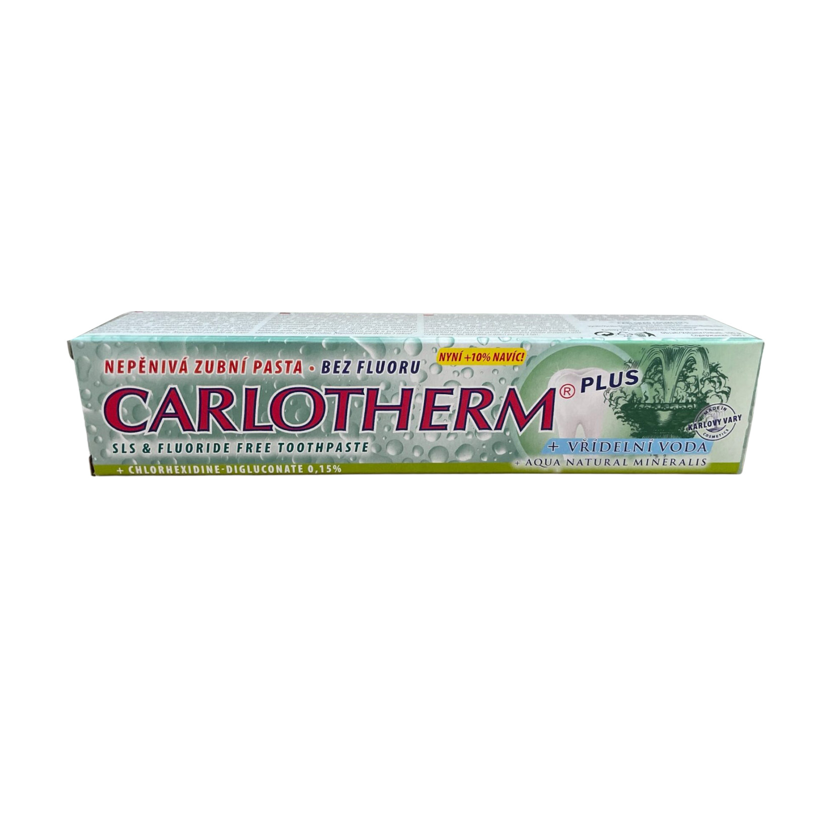 Zubná pasta Carlotherm Plus obsahuje minerálne zložky pre dôkladné čistenie a odstránenie zubného povlaku. 0,15% chlórhexidín sa postará o zdravie ďasien a ich regeneráciu. Pasta neobsahuje penidlá a je vhodná aj pre citlivé ústa.