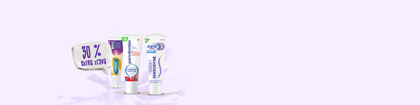 Teď rozdávame extra zľavu 30 % na všetky viacbalenia Sensodyne, Parodontax a Corega.Teď rozdávame extra zľavu 30 % na všetky viacbalenia Sensodyne, Parodontax a Corega.