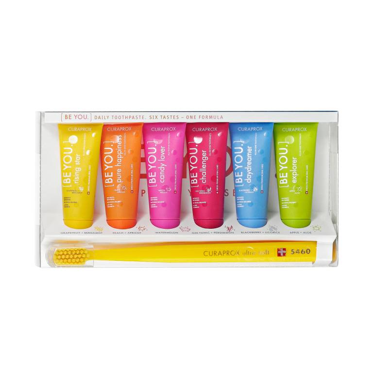 • Všetkých šesť príchutí pást Curaprox Be You v jednom balení