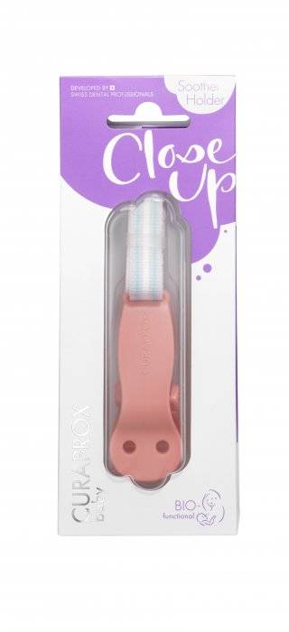 S držiakom na cumlík Curaprox už nehrozí, že dieťatko cumlík stratí. Držiak ľahko pripevníte na oblečenie a je možné ho použiť aj na hryzátka Curaprox.