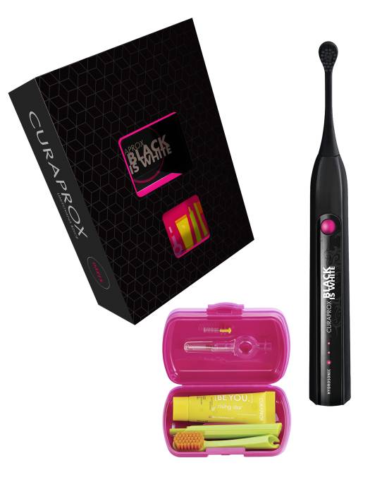 Curaprox Hydrosonic Black is White sonická kefka + cestovná sada