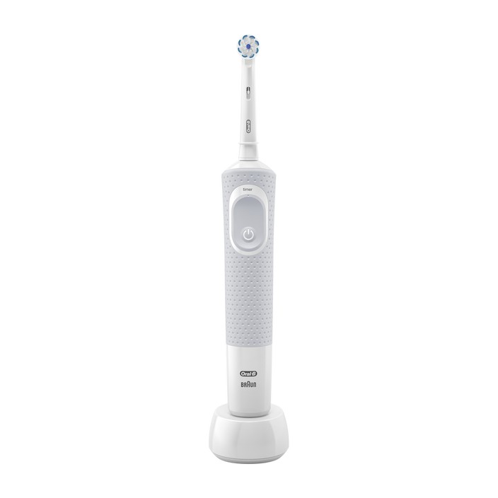 Rotačná zubná kefka Oral-B Vitality 100 Sensitive White s veľmi jemnou hlavicou Sensi Ultrathin šetrne odstraňuje zubný plak. Odporúčanú dobu čistenia postráži dvojminútový časovač.