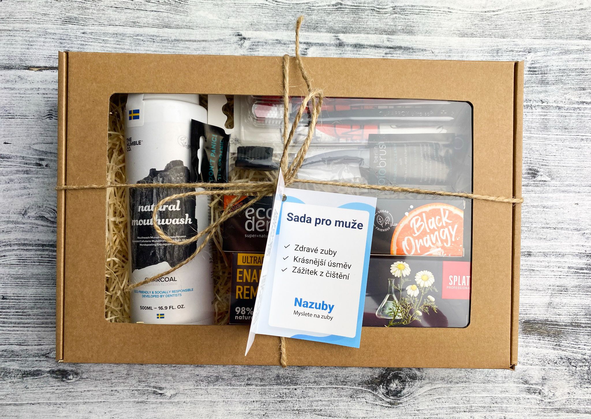 Čierna zubná pasta Ecodenta s pomarančovou príchuťou nás zaujala na prvý pohľad. Po vyskúšaní bolo jasné, že muži si ju obľúbia. Síce nie je tak svieži, ako sú zvyknutí, ale čistí jemne a pritom účinne. Keďže neobsahuje fluoridy, druhá pasta v balení – Splat Bio Professional Ultracomplex – je obsahuje. Vďaka tomu sa stará o pevnosť zubnej skloviny.