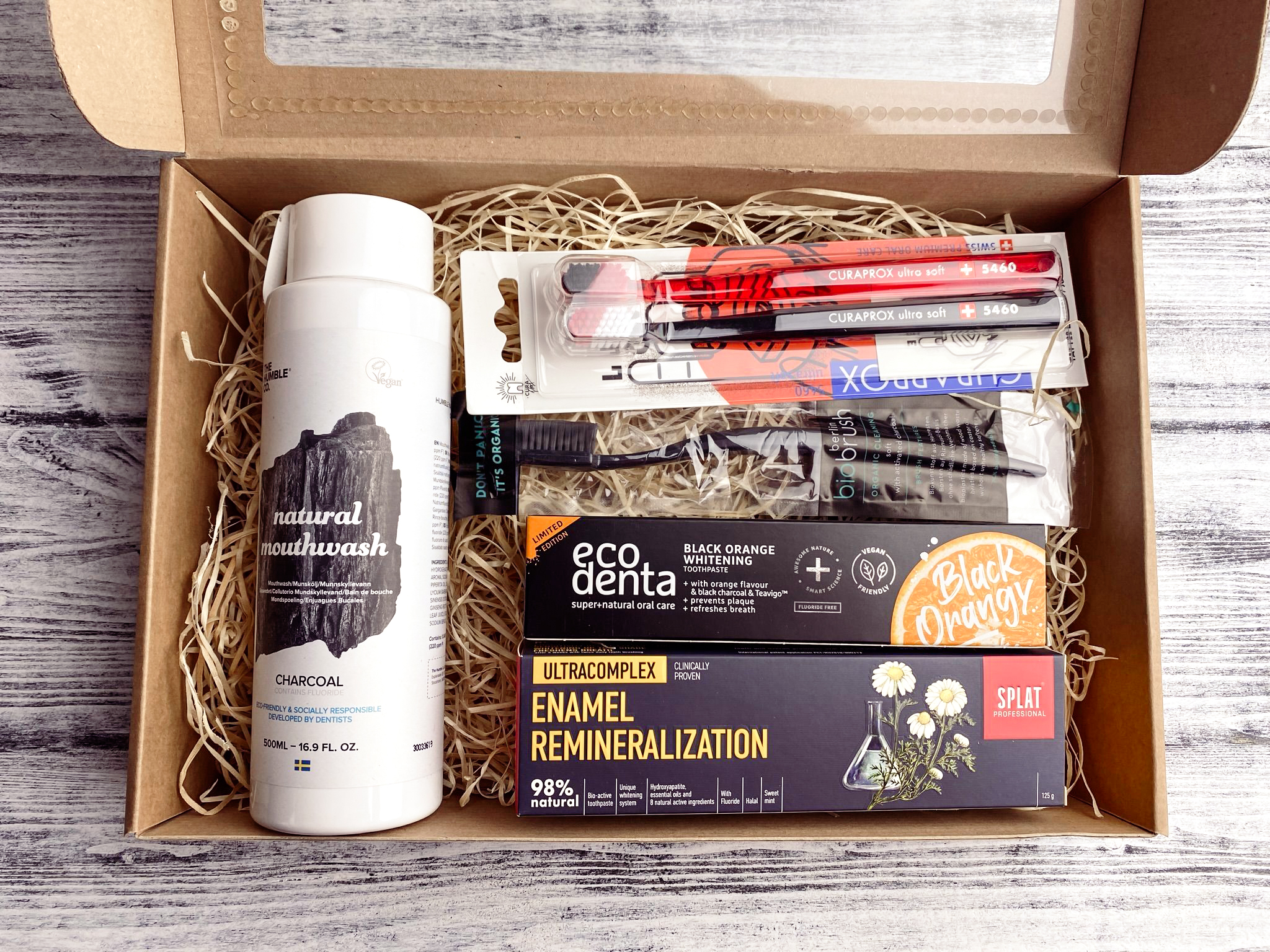 • 1× ústna voda The Humble Charcoal – s obsahom chlórhexidínu, pomáha sa starať o ďasná a pôsobí antibakteriálne