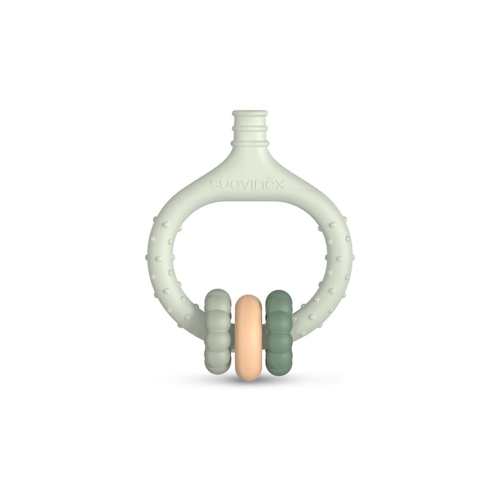 Silikónové masážne hryzátko Suavinex uľavuje od bolesti ďasien pri raste zúbkov. Ergonomická rukoväť z protišmykového materiálu sa dobre drží. Hryzátko pomáha rozvíjať jemnú motoriku.