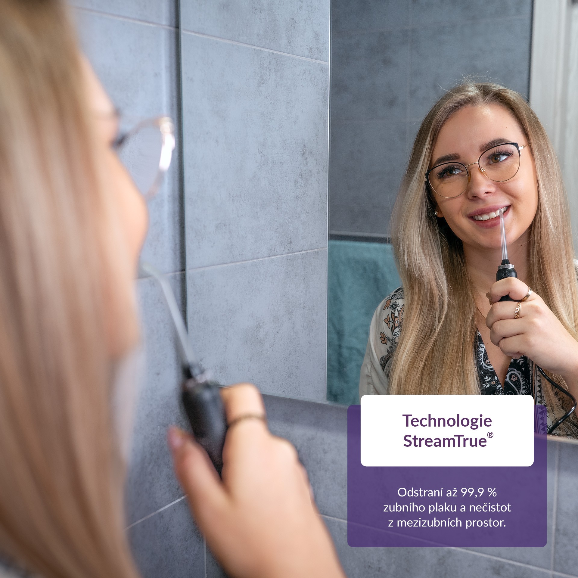 - Technológia StreamTrue® pracuje na princípe vháňania mikrobubliniek vytvorených z vody a vzduchu do medzizubných priestorov, a to pod vysokým tlakom