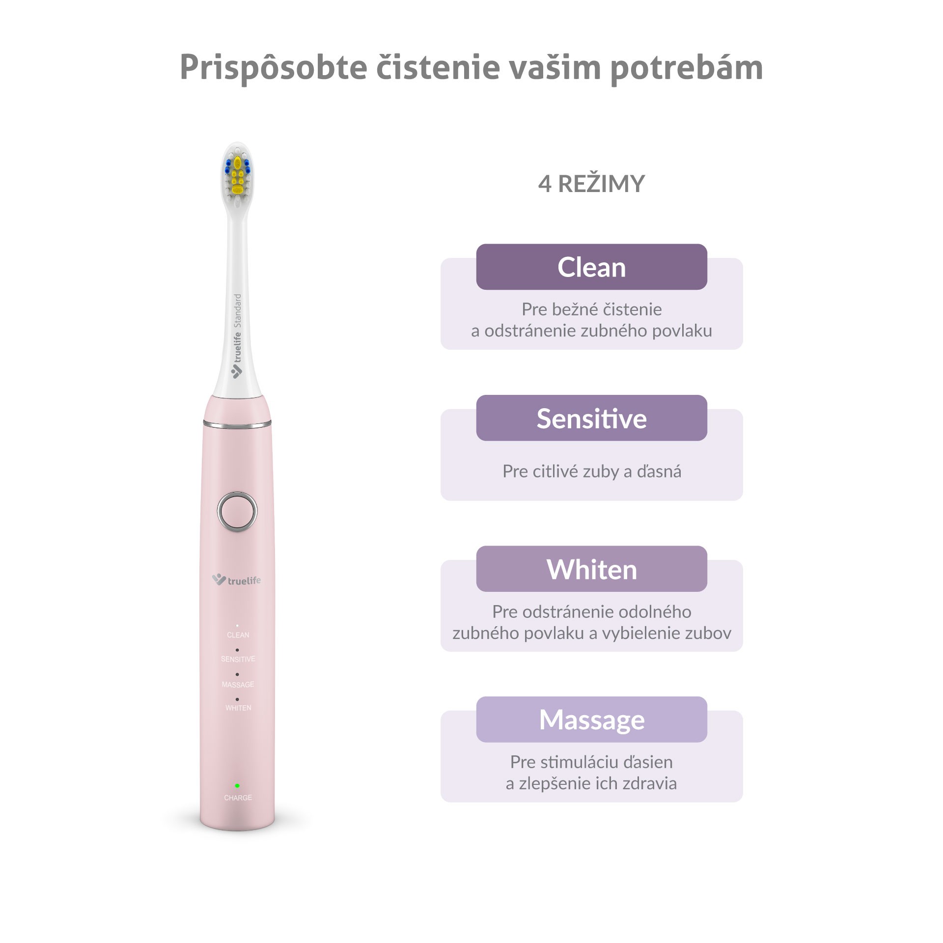 - Štyri režimy čistenia pre individuálne nastavenie
